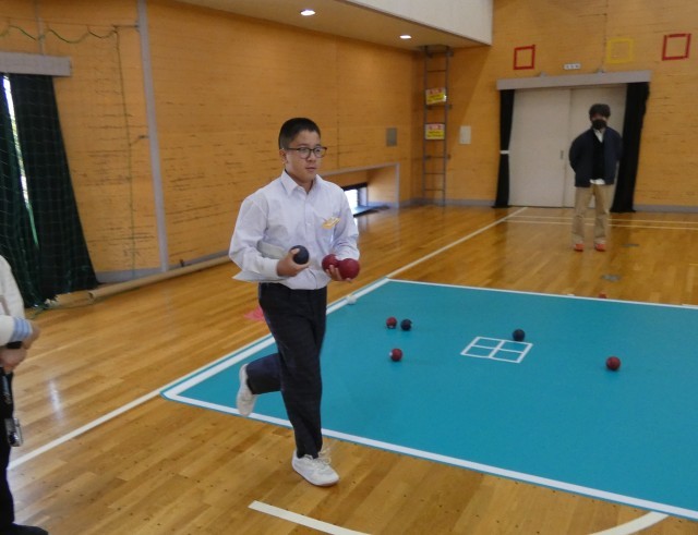 本日、午前中に校区内の小学校との交流会を行いました。初めに自己紹介や学校紹介を行ったあと、後半ではボッチャを行いました。中学生は小学生が楽しくボッチャがやれるようにお世話係を一生懸命行いました。ボールを渡したり、順番を教えてあげたりと、立派なお兄さん、お姉さんとしての姿を見ることができました。