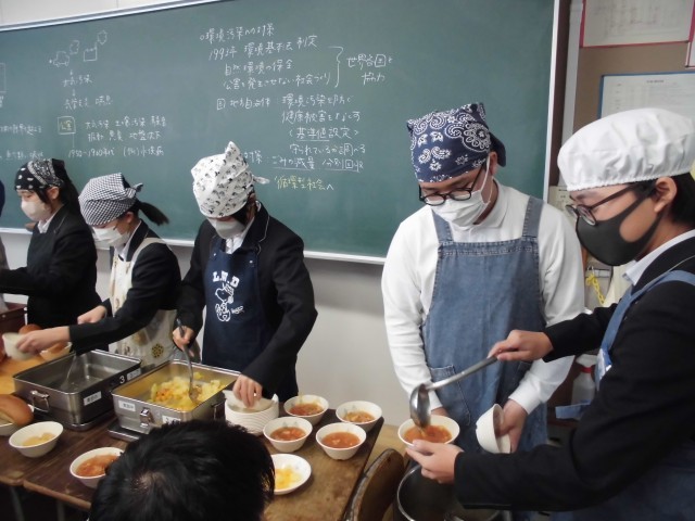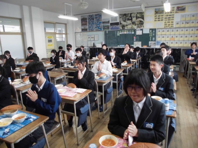 給食の時間の様子です。当番が手際よく準備をしてくれたおかげで、ゆっくり会食することができました。