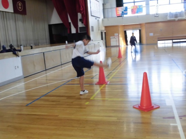 今日は体育の授業でキックベースをやりました。体育の先生も加わりとても盛り上がりました。蹴ったり、走ったり良い運動になりました。