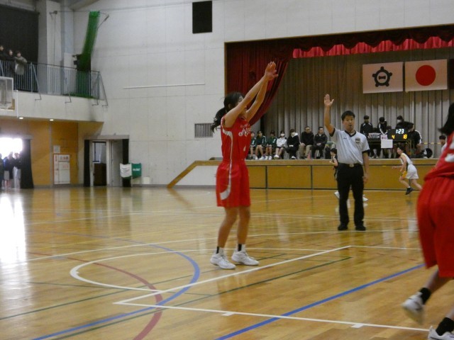 この試合では、オールコートマンツーマンでディフェンスをしました。2線のディナイを厳しくすること、1線をハーフアームでボールにプレッシャーをかけることを意識してDFをしました。はじめはオールコートDFで前からすぐに当たることができず無駄足を踏んでいましたが、試合が進むにつれてシュートIN後すぐにDFにつくことができ、無駄足を踏むことが少なくなっていきました。OFはボールをカットしゴール下でシュートを決めることでDFで頑張り、自分たちのOFは楽に決めることができました。