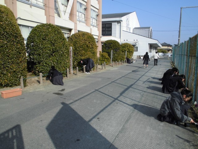 進路の決まった3年生が学校の美化のためにお花を植えてくれています。