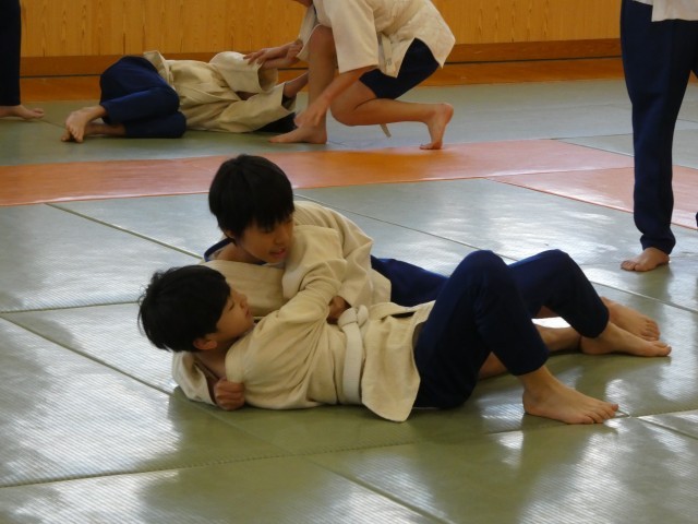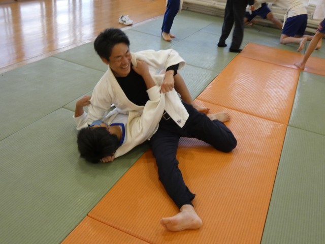 柔道部顧問の学年主任の先生に、何人かが立候補して稽古をつけてもらいました。