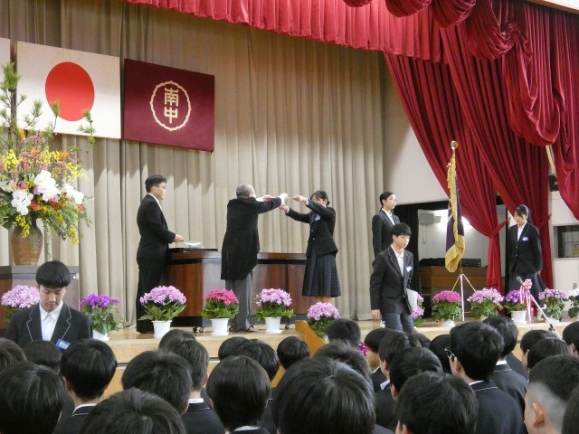 第79回卒業式が行われました。入場、卒業証書授与、校長式辞の様子です。