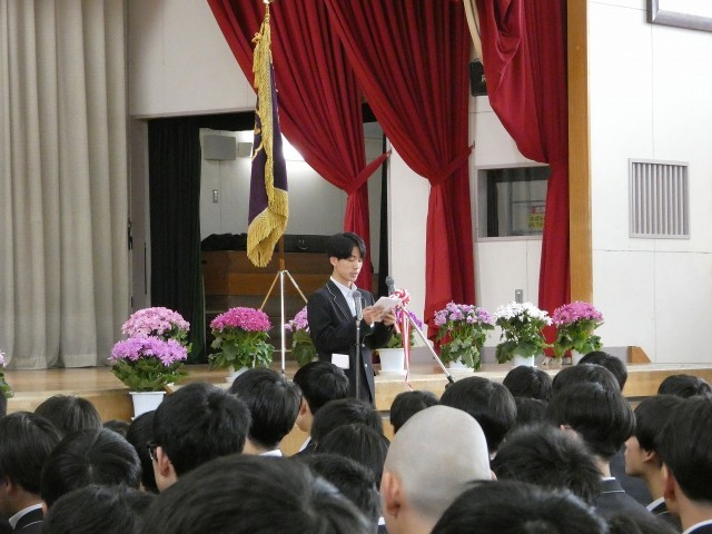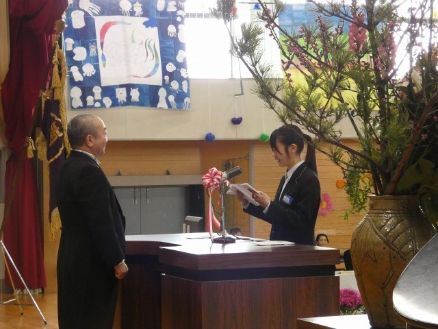 中野市長からのメッセージ、送辞、答辞の様子です。