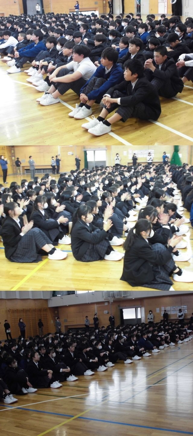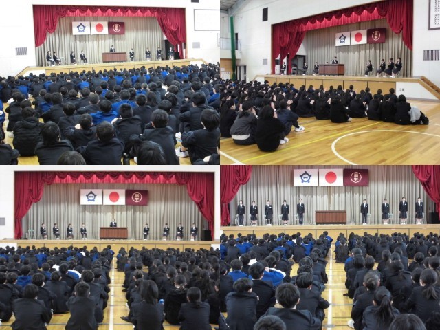 午後の5時間目に、屋内運動場において、令和8年度前期生徒会役員選挙立会演説会が行われました。