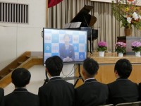 3年生は修学旅行の思い出の写真、1・2年生は学年の先生からのメッセージを見つめています。今日1日のスタートです。充実した1日になりますように…
