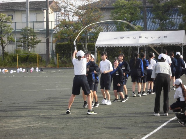 体育祭の長縄跳びの練習です。連続で38回という記録を打ち立てたクラスもあります。
