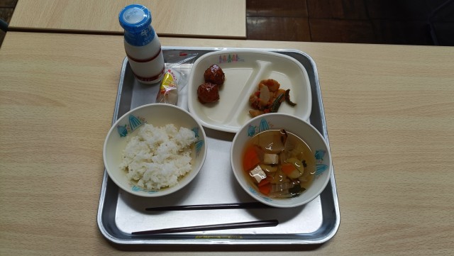 今年の十五夜は10月6日です。「いも名月」とも呼ばれる十五夜にちなんで、給食ではさといもをとり肉や栗などと煮ました。また、十五夜汁にはうさぎの形のかまぼこが入り、さといもの形をした月見団子も付けました。秋の行事食を楽しんで食べてください。