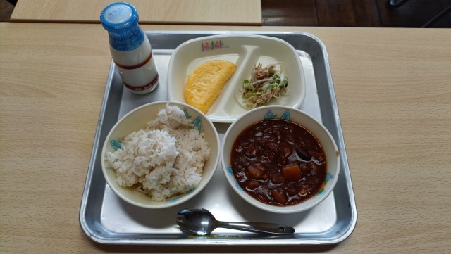 お豆のブラウンシチュー オムレツ ごぼうサラダ