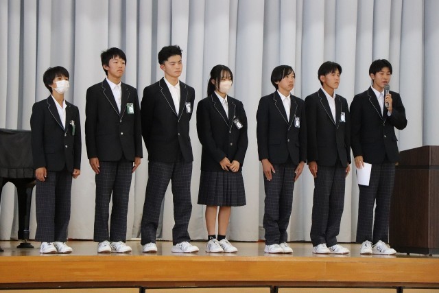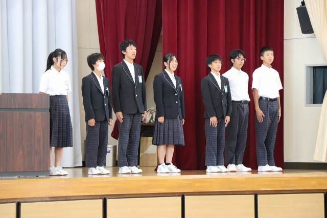 後期執行部の皆さん、7人で知恵と力を持ち寄り、生徒議会を活性化しましょう。そして、葉栗中学校を誇りに感じられるよう取り組んでいきましょう。期待しています。