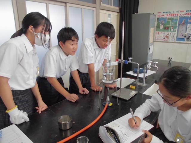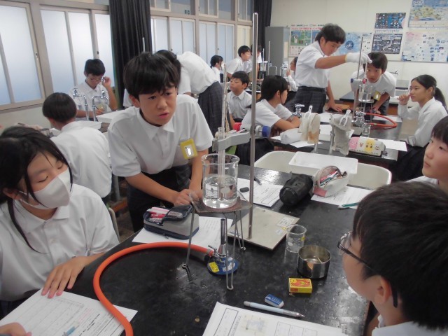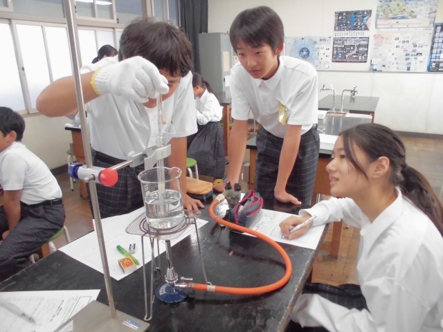 1年生の理科の授業では、パルミチン酸の融点を調べるために、加熱したときの温度を計測しました。