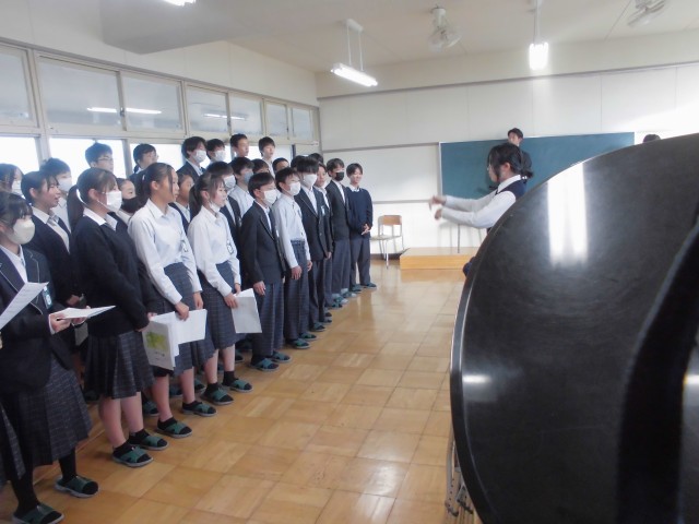 1年生の練習では、2年生と歌い合いをするクラスがありました。
