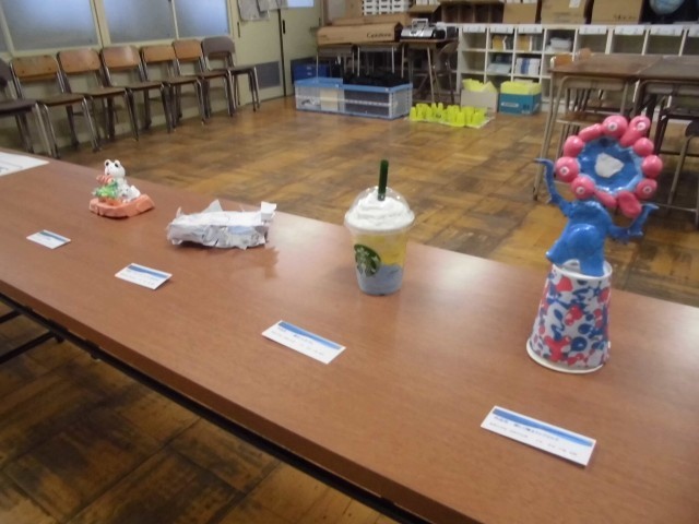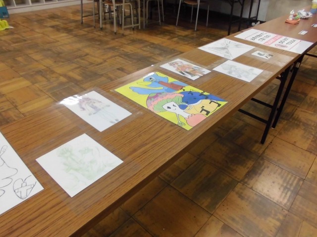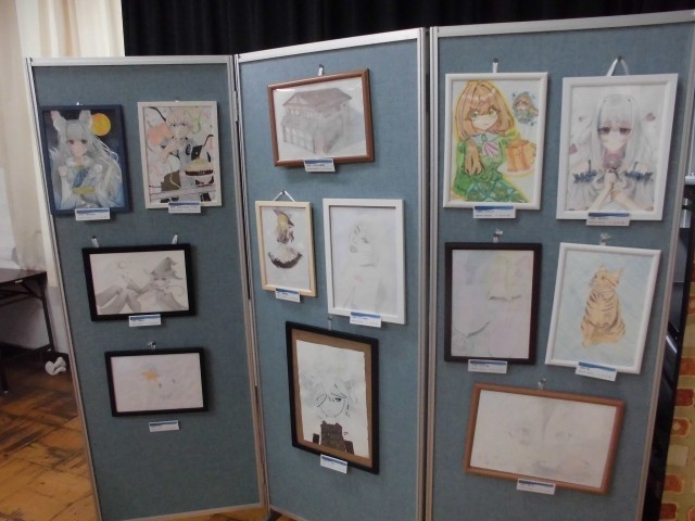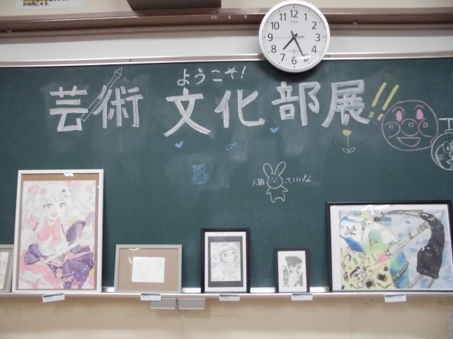 学校公開日に合わせ、校内では芸術文化部の作品を北舎2階の教室に展示しています。
