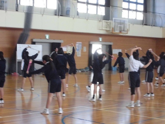 2年生は体つくり運動のなかで、縄を操作する活動をしています。