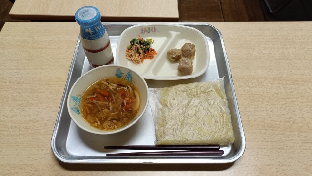 五目あんかけラーメンの「五目」とは、さまざまな種類の食材が入っているという意味で使われます。今日の五目あんかけラーメンにも、ぶた肉、なると、はくさい、にんじん、たけのこ、もやし、ねぎ、干ししいたけなどたくさんの食材が入っています。