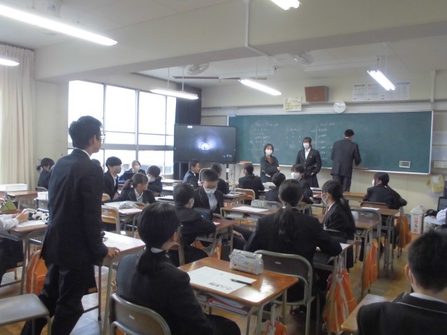 1時間目の学活では、2学期を振り返り、3学期に行われる「夢講座」の希望調査を行いました。また、学年レクに向け、どのクラスも「勝つために」「楽しむために」と作戦を立てていました。