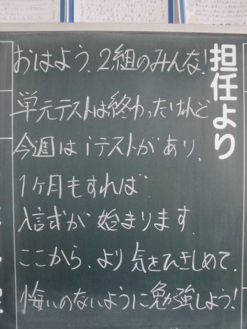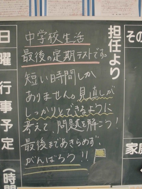 実力をはかる大切なテストです。担任の先生方も応援しています。