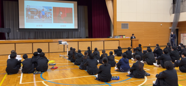 体育祭や合唱祭でクラスのために頑張ったことや、そのときの気持ち、自分自身が部活動や掃除などで頑張ったこと、みんなのために行っている小さな行動の積み重ねが大きな実を結ぶのを学んだことなどを発表しました。