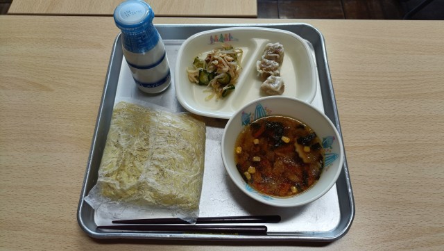 しょうゆラーメン(汁) ポークシューマイ もやしとちくわの中華和え