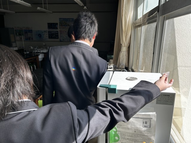 理科の授業では、虹をつくる授業をしました。