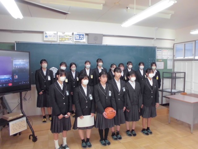 第19回一宮ジュニアウインターカップで準優勝に輝いたバスケットボール部と、優秀選手の表彰を行いました。