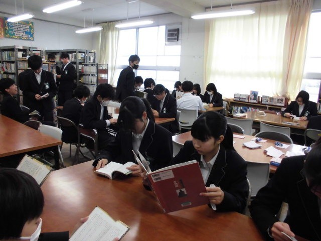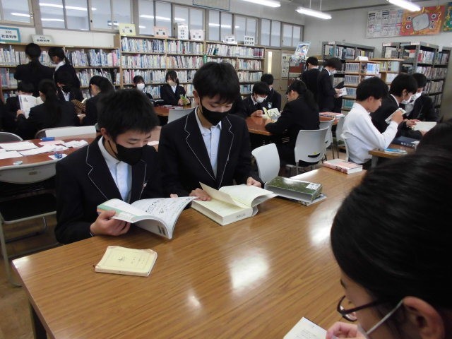 今日は2年生に、図書館で読書する機会を設けました。