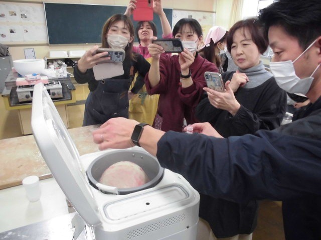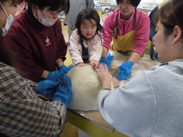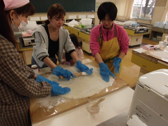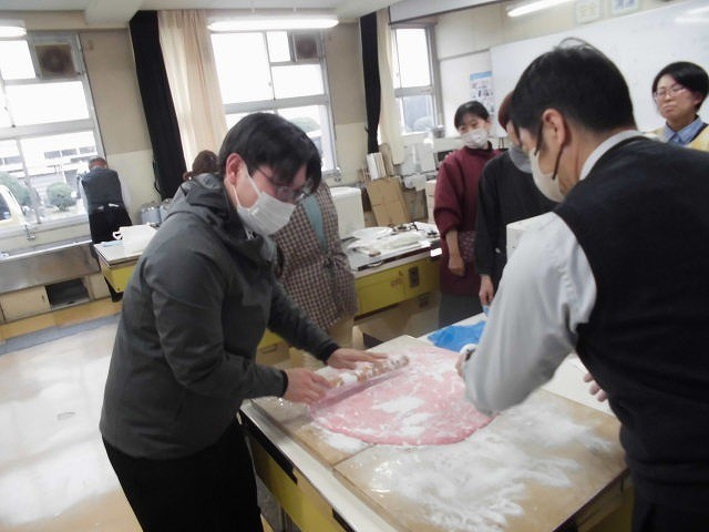 3月5日に鏡餅と祝いあられの贈呈式が行われます。その日に向けて紅白の鏡餅づくりをPTAの方々のご協力のもと行いました。