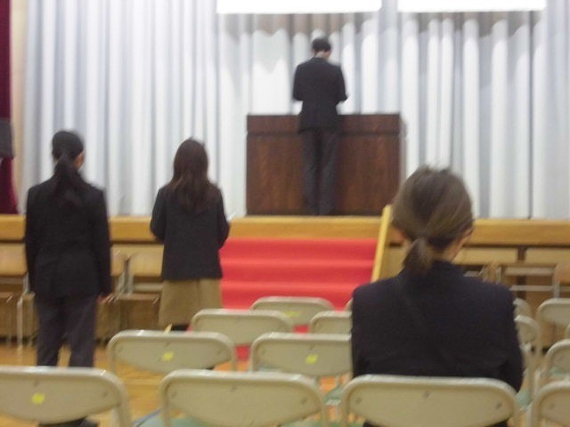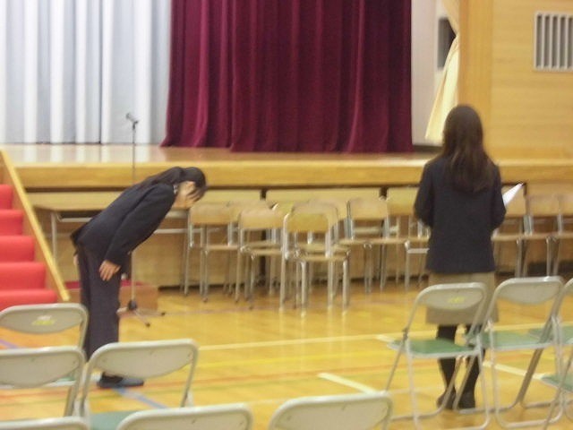 卒業式に向けて、送辞と答辞の代表生徒の練習を行っています。