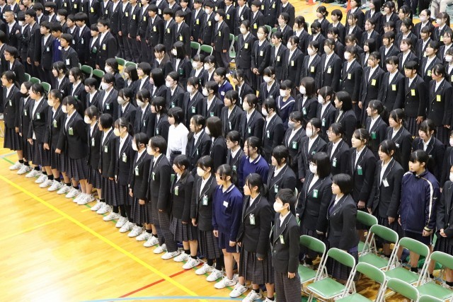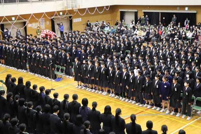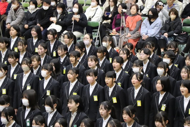 1・2年生が一体となって、3年生に気持ちを込めて歌のプレゼントを送りました。