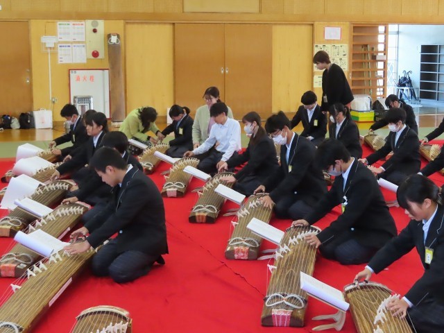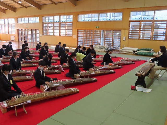 今日と明日の2日間、1年生を対象に箏の学習を行います。