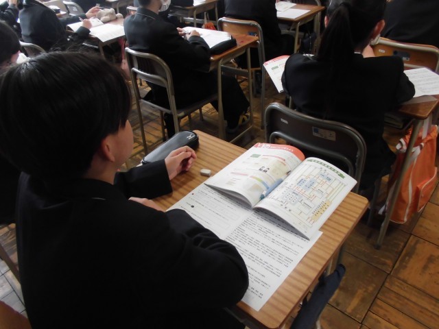 中学校卒業後の進路について調べ、さまざまな進路があることを学びました。自分の将来について考えながら、これからの学校生活をどのように過ごしていくかについても考えることができました。2年生に向けて目標をもって過ごしてほしいと思います。