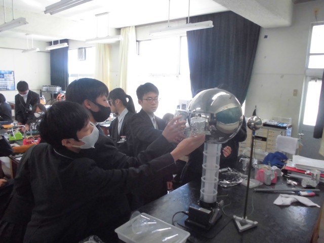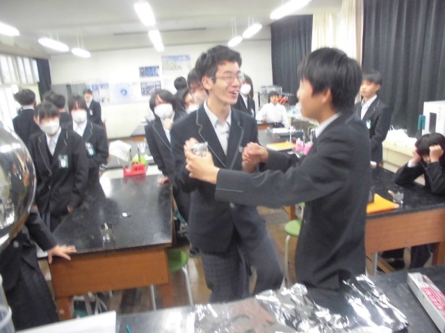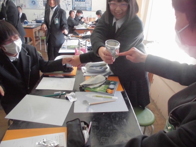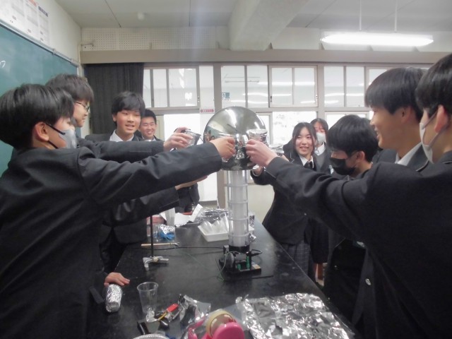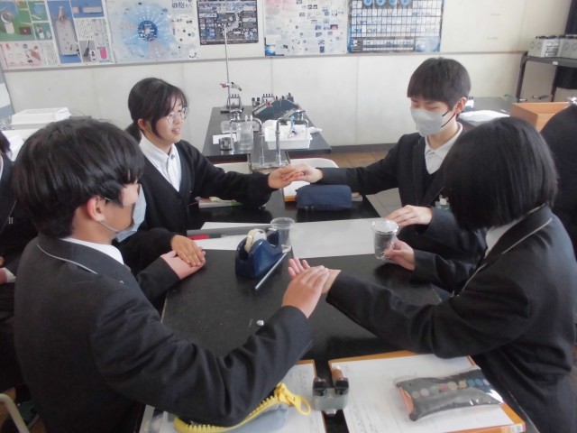 プラコップとアルミホイルで、電気を少量ためることができる装置を作り、電気をためました。楽しそうに実験をする様子が見られました。