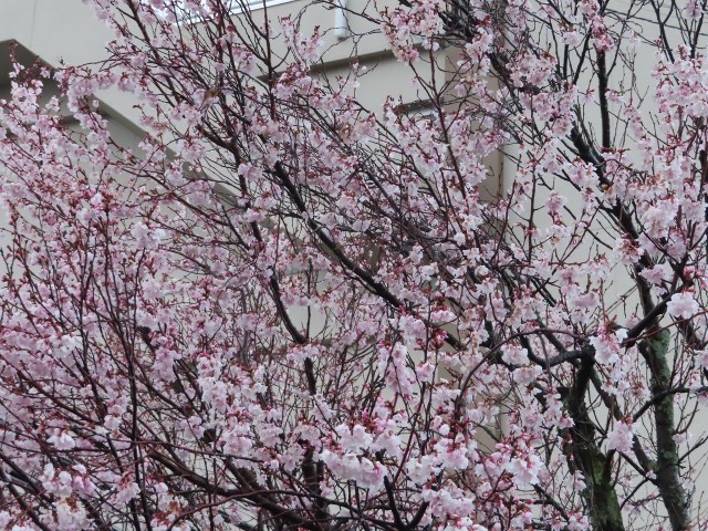 東門の近くにある桜が咲き誇っていました。今年の桜の開花は例年に比べ早いようです。