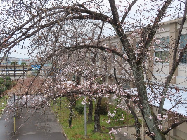 このところの暖かさで校庭の桜が咲き始めました。例年より早い開花と新聞やニュースでも伝えられています。