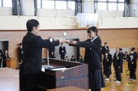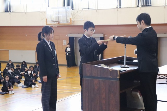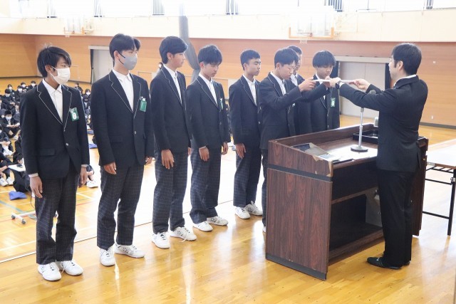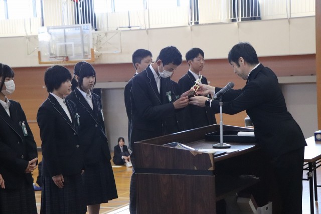 西尾張ジュニアソフトテニス研修大会において、ソフトテニス部男子3位入賞しました。また、葉栗スポーツマンクラブ、祝い餅あられパッケージデザインの表彰伝達を行いました。