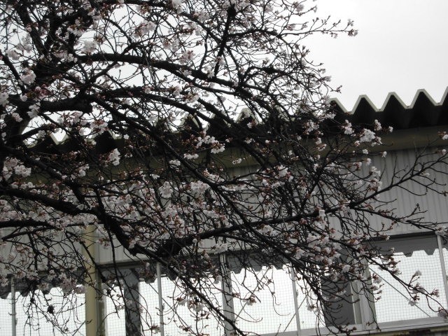 この時期に降る雨のことを「催花雨」と言うそうです。花が咲くのを助けるやさしい雨ですね。葉栗中学校にも桜の木が何本かあります。