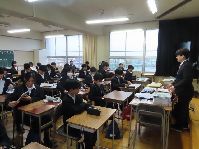 1年生は昨日より表情が柔らかくなったように感じました。たくさんの提出物を担任の先生に渡しています。