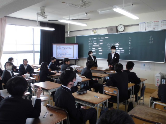 葉栗中学校で、4/13(月)の午後から前期学級組織づくりを行いました。「こんなクラスにしたい」「クラスをよくしたい」という思いを口にする生徒もおり、頼もしさを感じました。今日の思いを忘れずにこれからの学校生活を送ってほしいと思います。