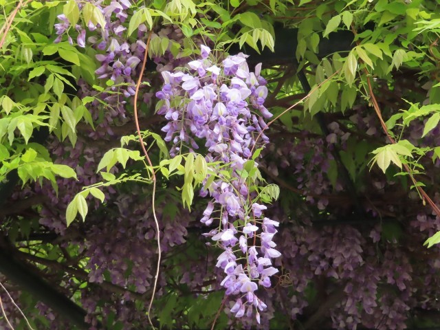 桜の後に咲く花として知られ、長い花穂を垂らす紫の藤棚が今年も美しい季節を迎えました。
