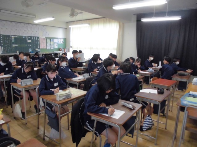 本日は、中学校生活最後となる身体測定と視力検査、聴力検査が行われました。1年生の頃からの大きな成長を実感する時間となりました。また、その裏では「修学旅行のスローガン決め」なども行われました。いよいよ最高学年としての大きな行事の準備が始まり、クラスの雰囲気も高まっています。中学校生活最後の1年が充実したものになるよう、日々の学校生活を大切に過ごしていきます。