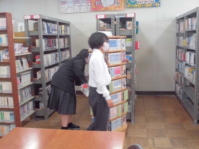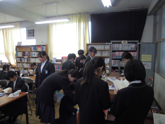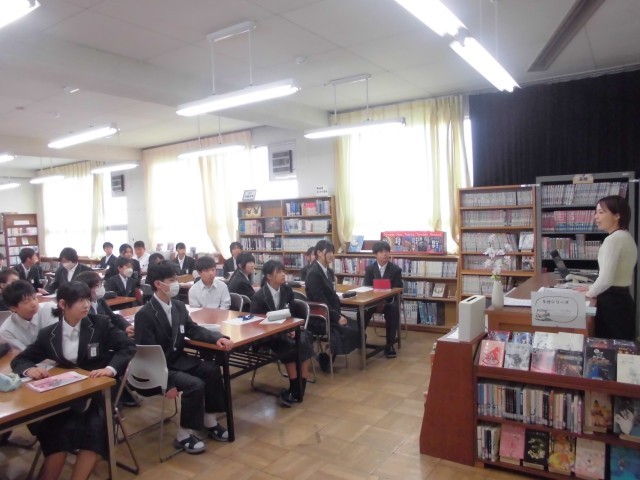 先日、新入生を対象に「図書館オリエンテーション」を行いました。司書さんから、葉栗中の図書館について説明を聞き、その後一人一冊図書を貸し出しました。短い時間に、みんながすばやく本を選ぶことができたので、司書さんも驚かれていました。