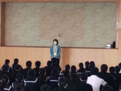 3年生の先生から自己紹介や、学習、生活、進路についての話を聞きました。