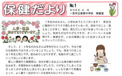 健康診断の予定や、健康観察のお願いなどが掲載されています。