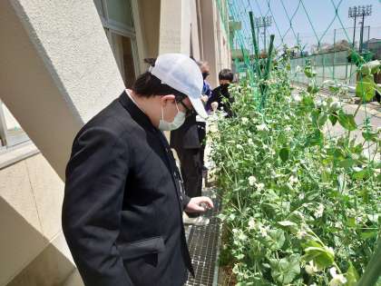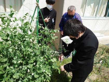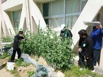 7・8組は本日、学活の時間にスナップエンドウ、さやえんどうの収穫を行いました。