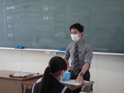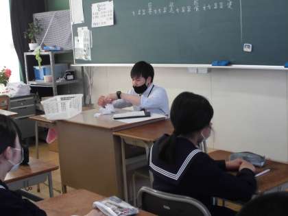 本年度最初の給食も終わり、午後は学級役員選挙を行いました。3年生は、修学旅行などの行事も予定されており、前期の学級をまとめる役割を担う役員を決定します。真剣な表情で選挙に臨んでいました。その後、学級の係や委員会を決めました。一人一人が責任をもって活動に取り組むことを期待しています。