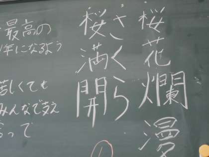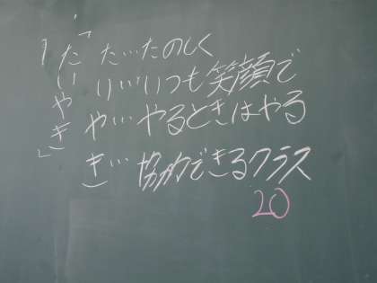 3限目は学級の1年間の目標を決定する「学級目標」を決めました。級長・副級長を中心として学級の級友全員で決めました。この目標が達成できるように、1年間の学校生活を頑張りましょう。