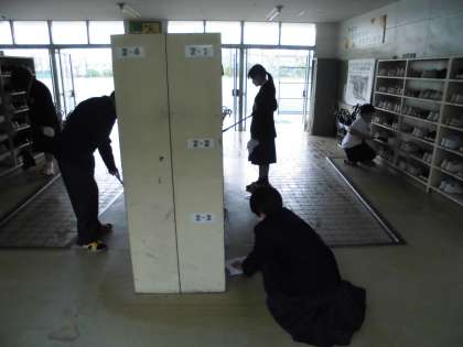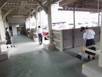 4月16日(土) 黙々清掃【1年生】 公開日 2022/04/16 更新日 2022/04/16 1年 今週はいよいよ清掃活動がスタートしました。新しく任せられた掃除区域に分かれて、それぞれが学校の美化活動に貢献してくれています。葉栗中では、余計な話をせず清掃に取り組むことを「黙々清掃」と呼んでおり、どの生徒も真剣な眼差しで清掃に取り組んでいました。