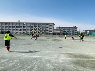 本日、サッカー部の練習の様子です。前半に基礎練習を行い、後半はゲームを中心に練習をしました。風が強い中ではありましたが、声を掛け合い一生懸命に取り組んでいました。