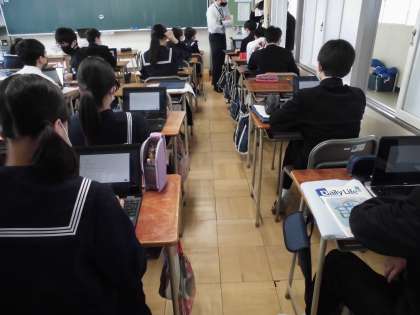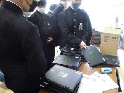 家庭での学習や授業で使用するために、個人に1台クロムブックの配付を行いました。