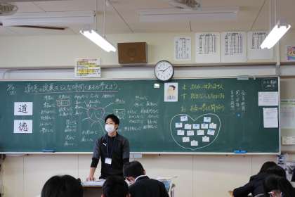 1年生の今日の1限は、道徳でした。初めての道徳の授業で、少し緊張している様子が見られました。「道徳とは」という内容で、道徳の授業で大切にしたい心についてクラスの仲間と考えました。多くの意見が出たことで、より内容が濃いものとなりました。